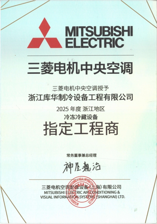 浙江庫華制冷設備工程有限公司,品牌三菱電機在浙江省內的冷凍機指定工程店。