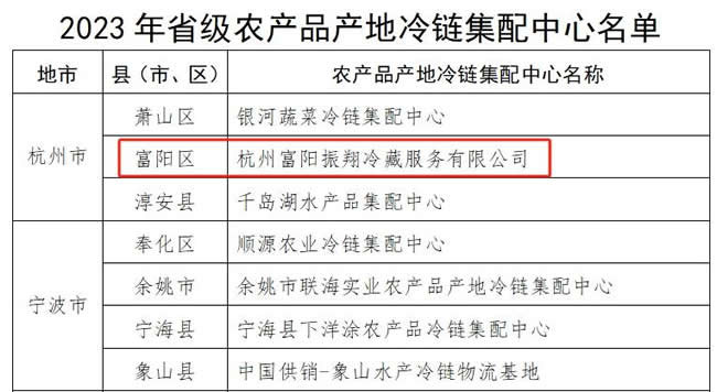 富陽振翔冷庫被認定為“省級農產品產地冷鏈集配中心”